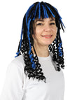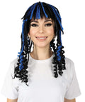 HPO Adult Women Cleopatra Braid Black and Blue Wig , Crocheted Style Iconic Look, Perfect for Cosplay Halloween and Themed Parties,Premium Breathable Capless Cap with Flame Retardant Synthetic Fiber Hair