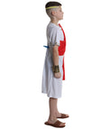 HPO Elegant Ancient Roman White and Red Toga Boy Costume | Suitable for Halloween | Flame-retardant Synthetic Fabric