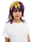 HPO Women’s Layered Purple & Yellow Spiky Anime Wig – 17 Inch Two-Tone Synthetic Hair with Capless Cap Design | Ideal for Roleplay, Cosplay Events & Themed Parties