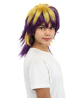 With deep violet color contrasted against sunshine yellow accents, this Anime Wig brings instant drama and flair to any costume.