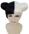Made of flame-retardant synthetic fiber, this Two Buns Wig features an adjustable lining that can be stretched up to 22 inches in diameter, accommodating both adults and teens.