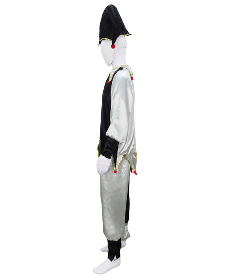 Step into the dark side with our Black and White Evil Jester Costume. This costume set includes a black and white jester top, pants, and hat, perfect for Halloween or...