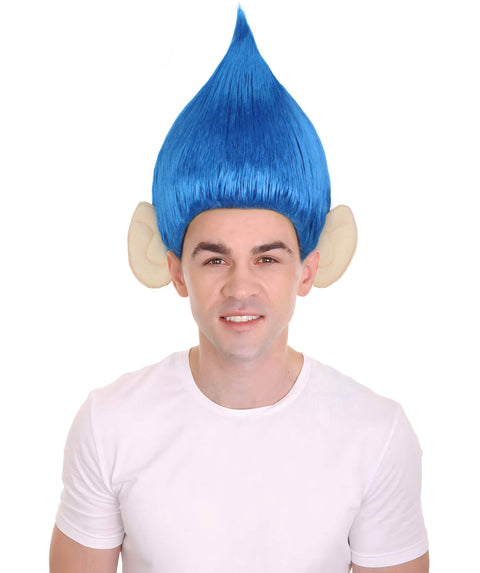 HPO Adult Men's Pointy Diamond Guy Troll Wig with Blue Ears | Multiple Color Options