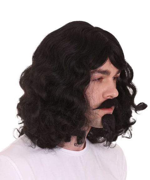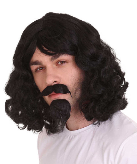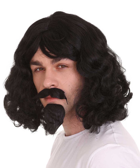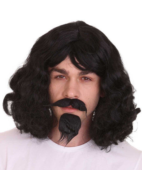 Musketeer Wig & Goatee | Black Old Fashioned | Premium Breathable Capless Cap