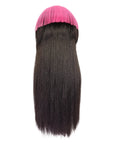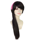 The deep, dark brown base is accented with a vibrant pink crown highlight, adding an unmistakable edge to your look.