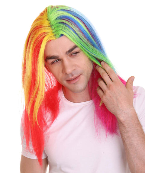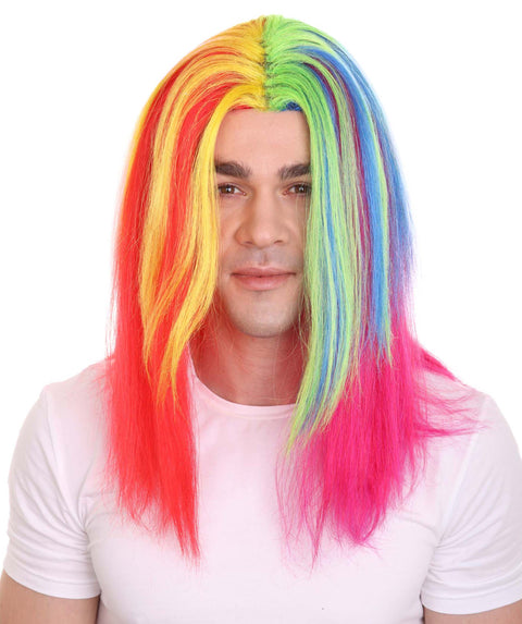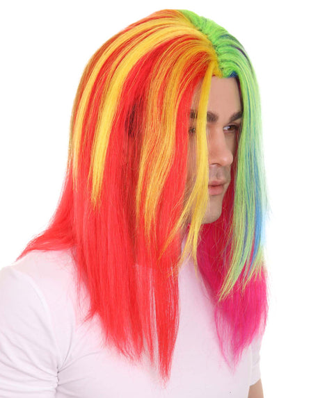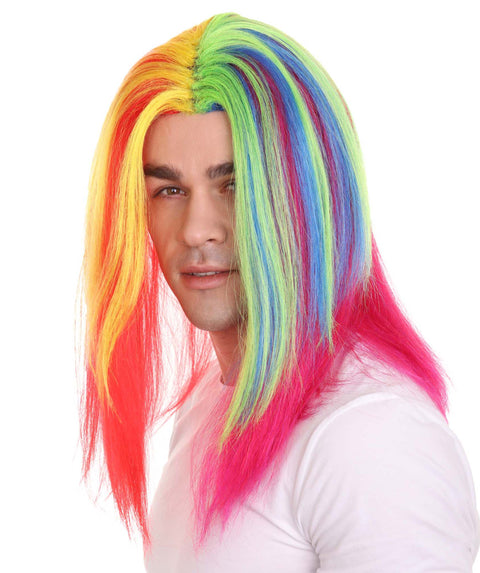 Rainbow Rapper | Multiple color Straight Medium Length Music Icon Wig | Premium Halloween Wig