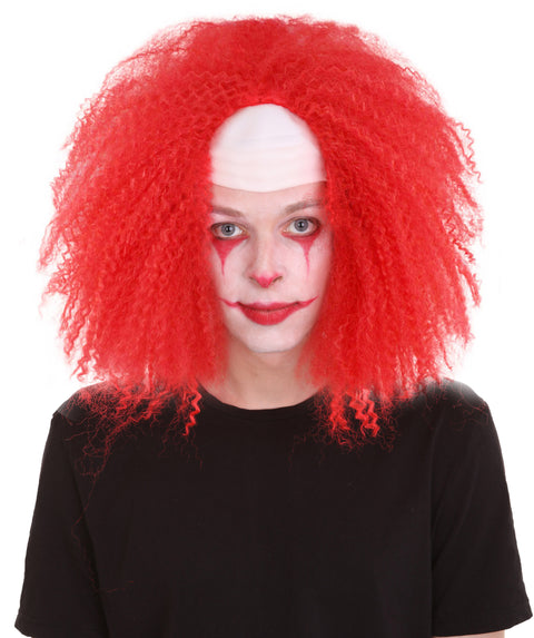 Red Bald Scary Clown Wavy Wig Halloween Cosplay Party Fancy Costume Hair