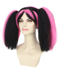 The ponytails are thick and smooth, accented with striking pink streaks that add vivid contrast and energy to the dark base color. Designed for fans of themed parties, and festival fun, this wig delivers a statement hairstyle that’s both playful and fierce.