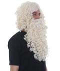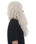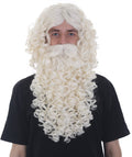 Adult Men's Professional Christmas Santa White Wig with Full Beard Set | Perfect for Halloween| Flame-retardant Synthetic Fiber