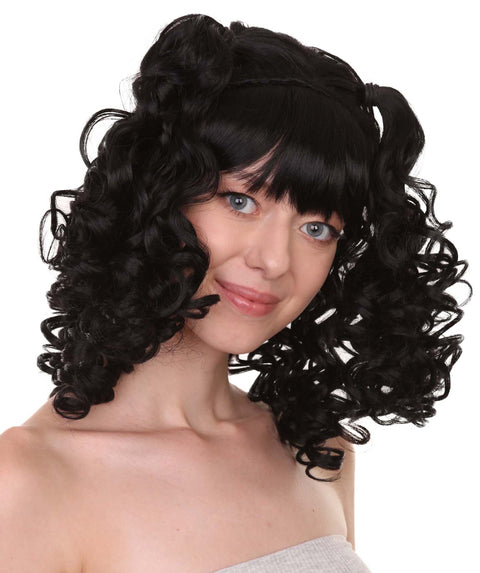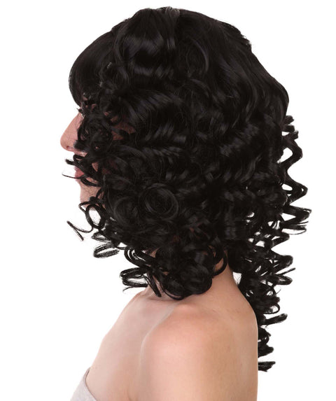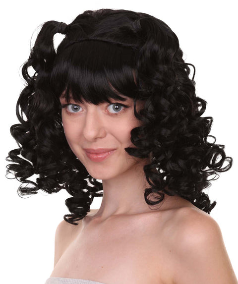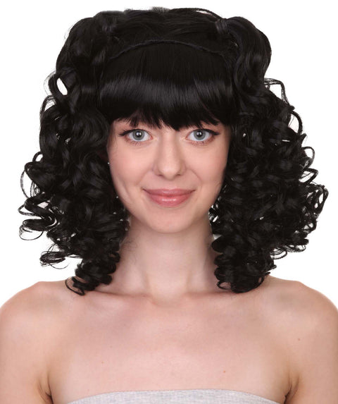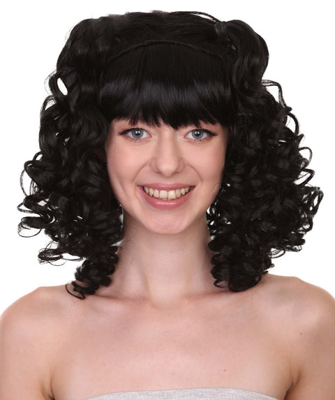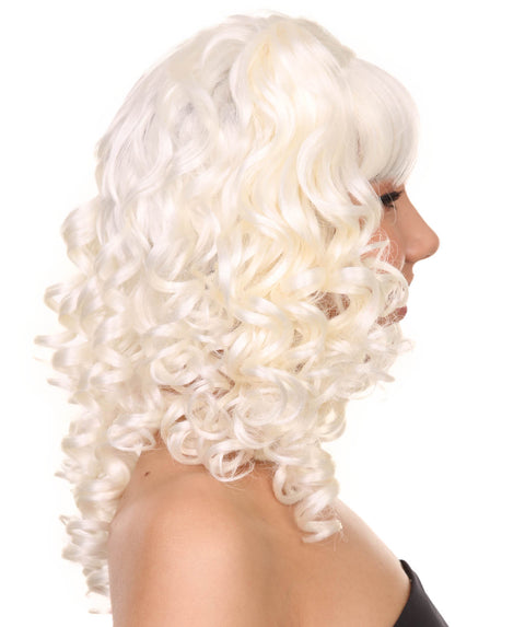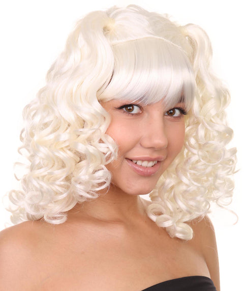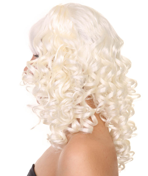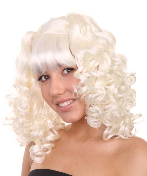 Womens Colonial Lady Curly Blonde Historical Wig with Black Lace | Premium Breathable Capless Cap