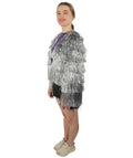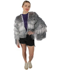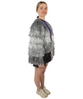 HPO Adult Women's Tinsel Sparkly Silver Jacket I Perfect for Halloween and Cosplay